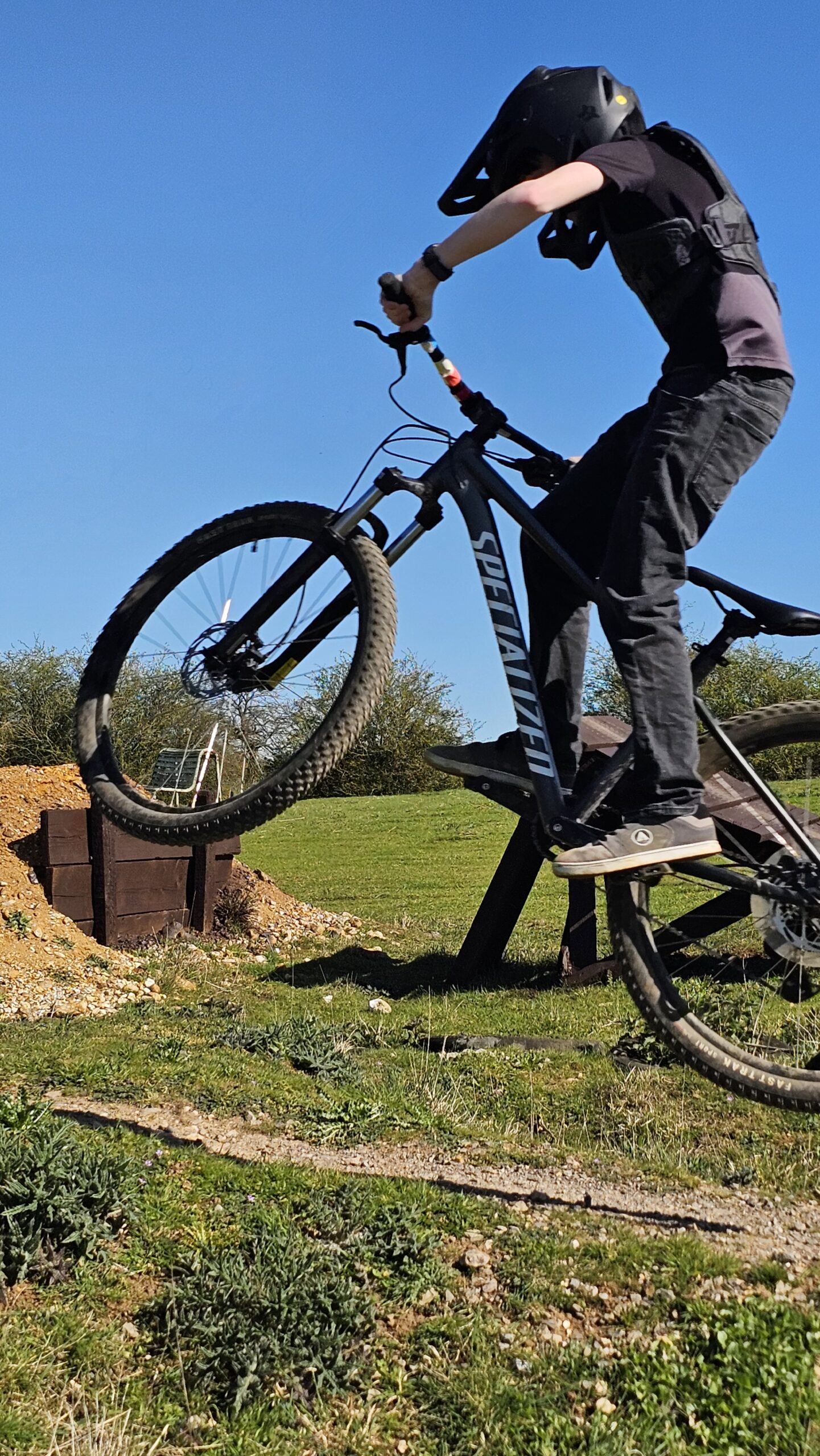 I coached James last year and we laid a foundation in his riding to build on. Today was the day to move his riding onwards and he had a wish list. I focused on his foot positioning in turns and his looking and speed judgement in jumping. We began with basic drops to 3ft then onto jumps and a 7ft gap, that’s where we left off last session. From there He really grew in confidence as we rode onto and off the woodwork and linking turns into them too. By the end of the session he was linking gap drops and jumps to 10ft!