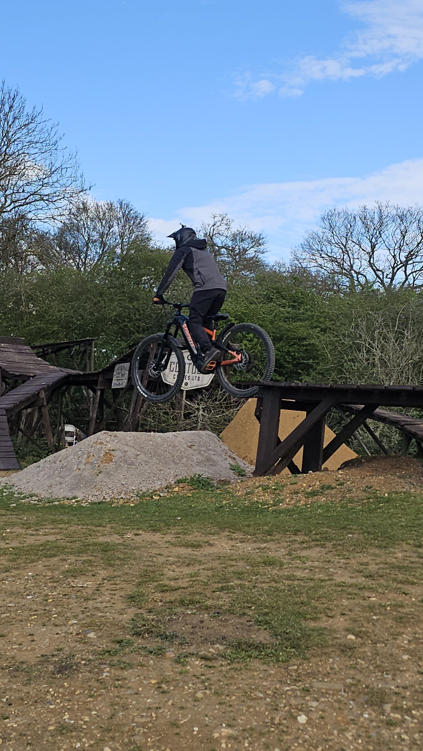 Alan and Matt wanted to get better at cornering as well as jumps, steep drop offs and drops. Before this could happen I needed to correct their missing skills and change set up too. We began with making sure foot and body positioning was good and then the session took off. Brilliant improvements.