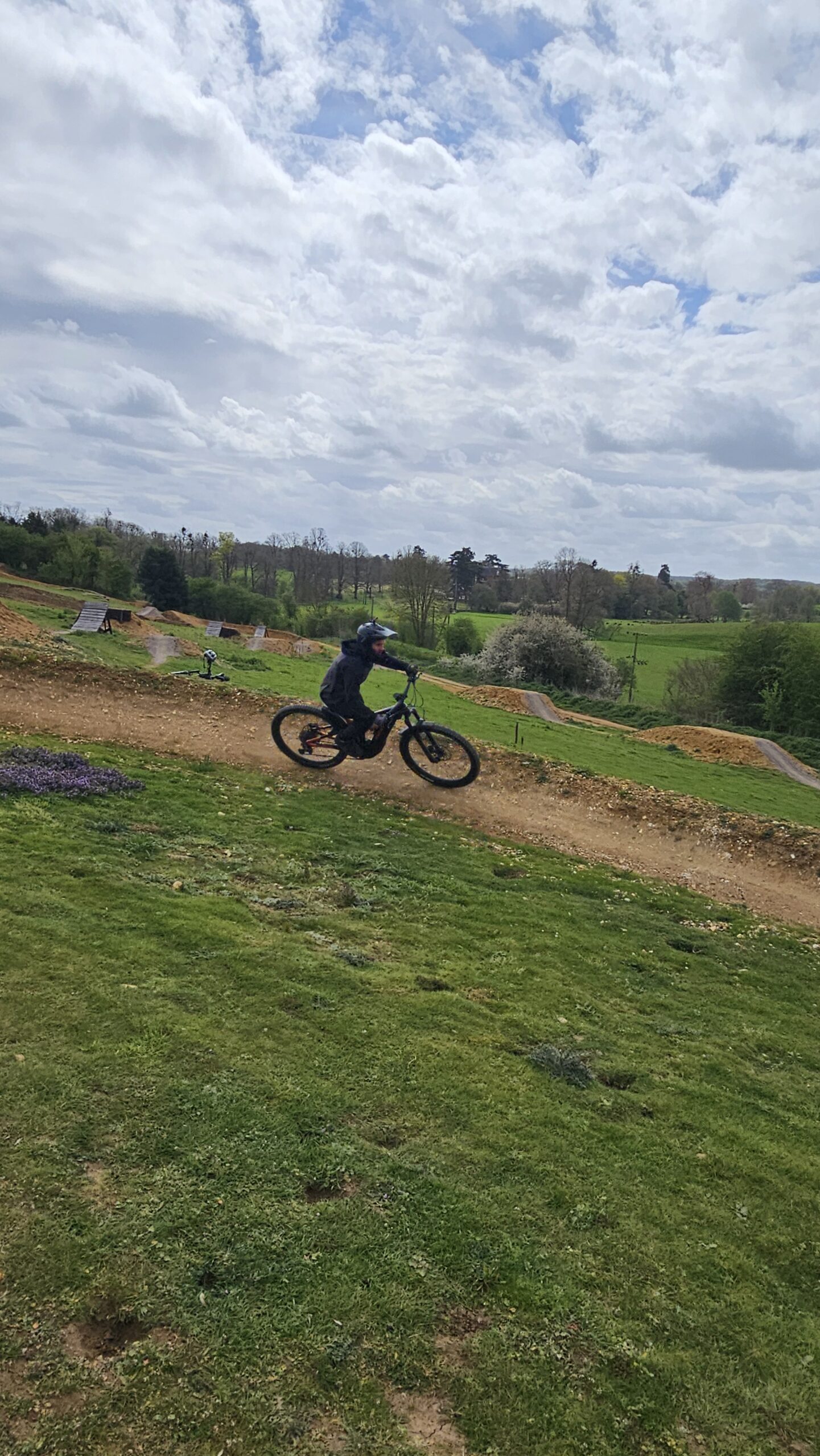 Alan and Matt wanted to get better at cornering as well as jumps, steep drop offs and drops. Before this could happen I needed to correct their missing skills and change set up too. We began with making sure foot and body positioning was good and then the session took off. Brilliant improvements.