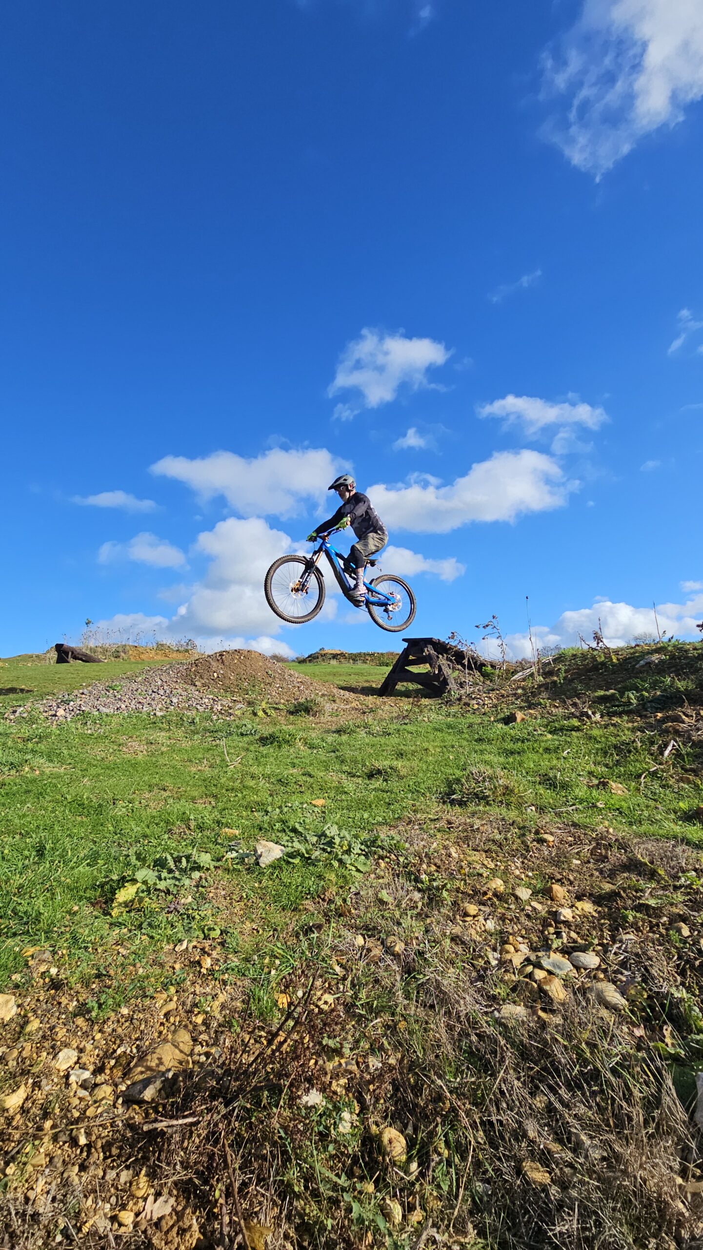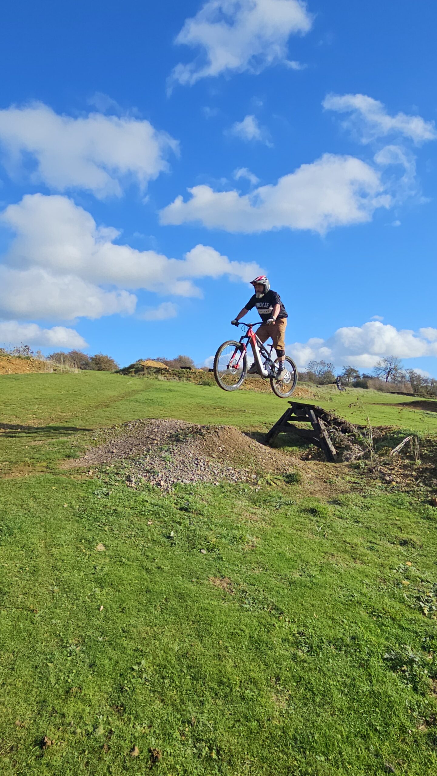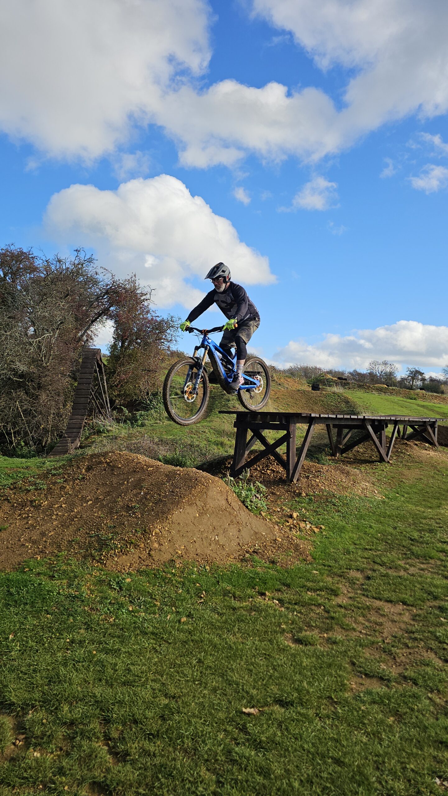 Dave and Andy wanted to learn to drop and jump better and move their riding on. The skills check showed body and foot positioning needed work before techniques could work properly. I began with drops, then moved to a 7ft tabletop jump to really separate the jump technique. From their they rode the gap jump side too before we moved to cornering. After lunch , I began moving them through to more gaps and drops and linking a long line onto the woodwork. Wallrides, wooden gaps and drops were all linked in an awesome session of progression!