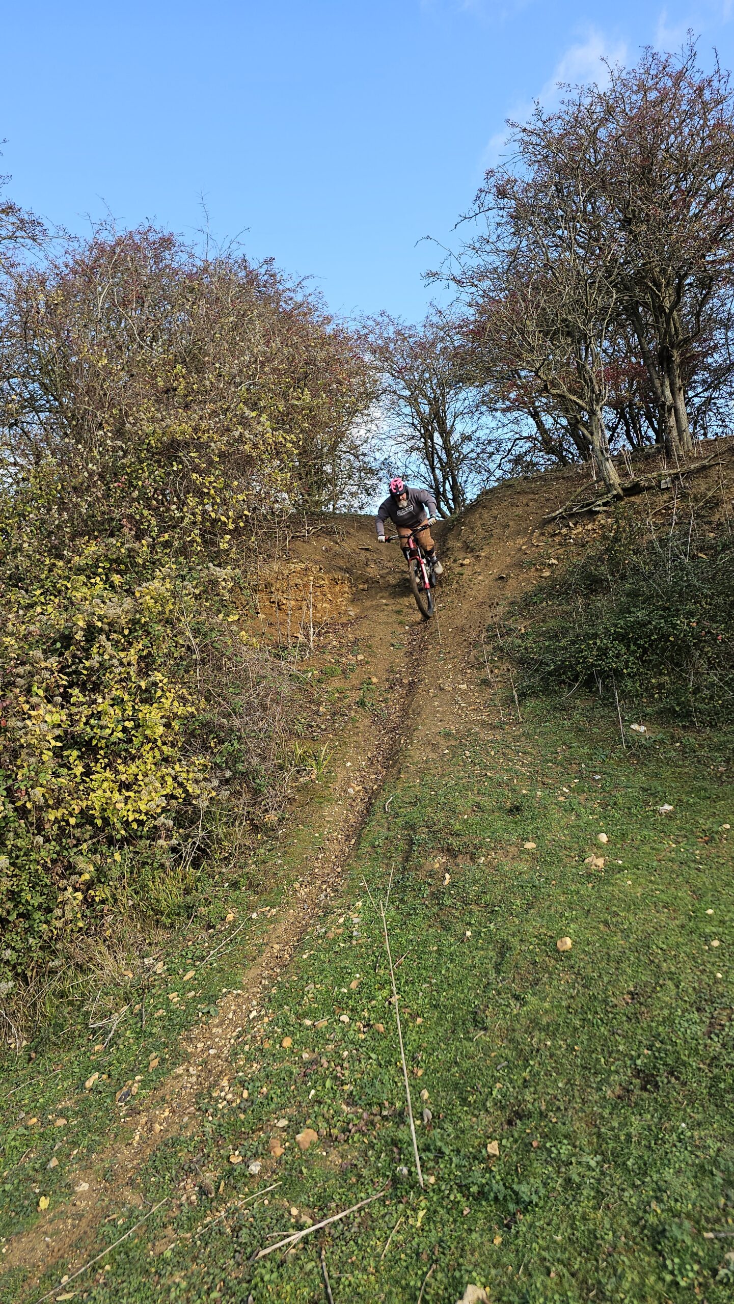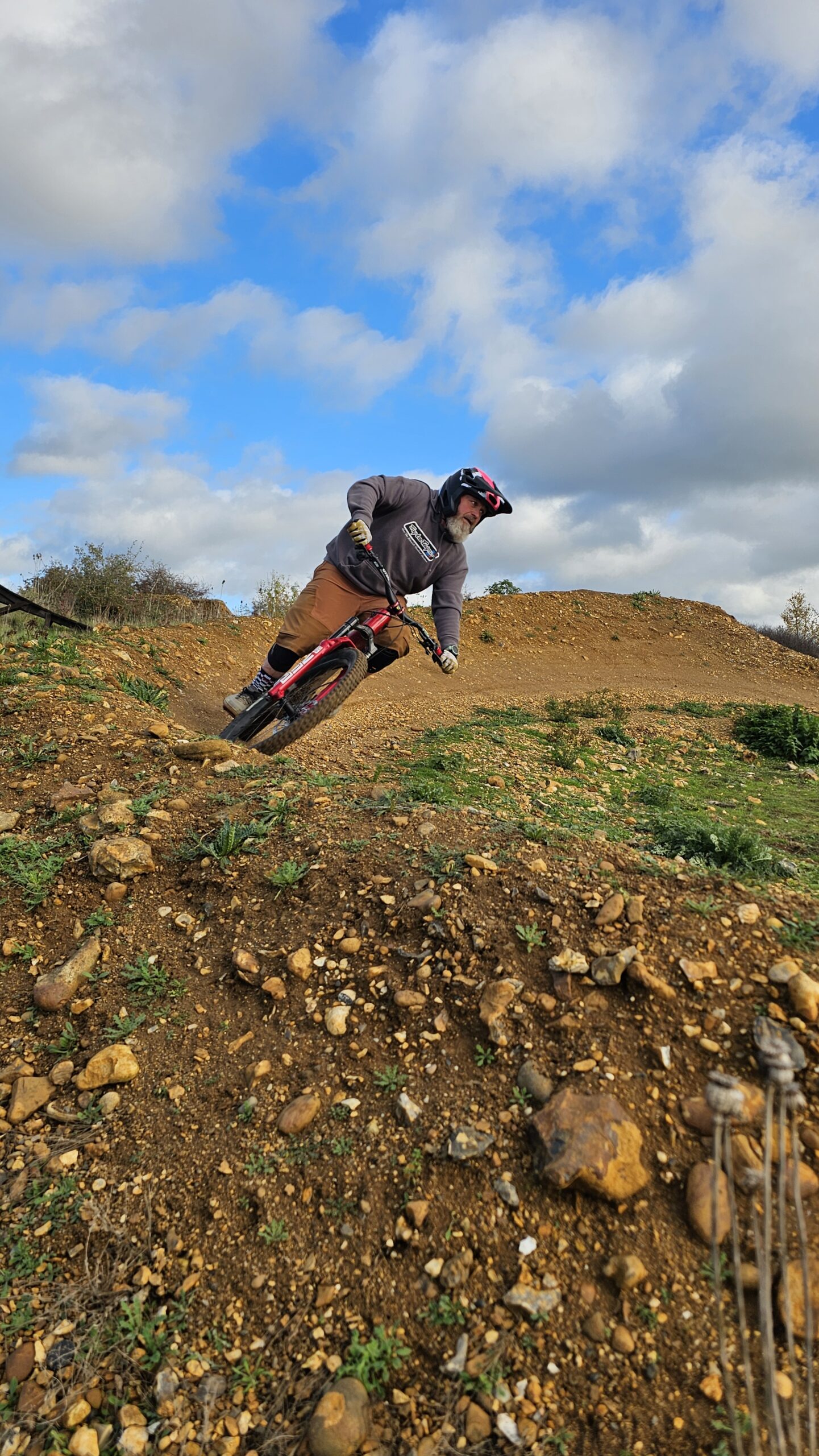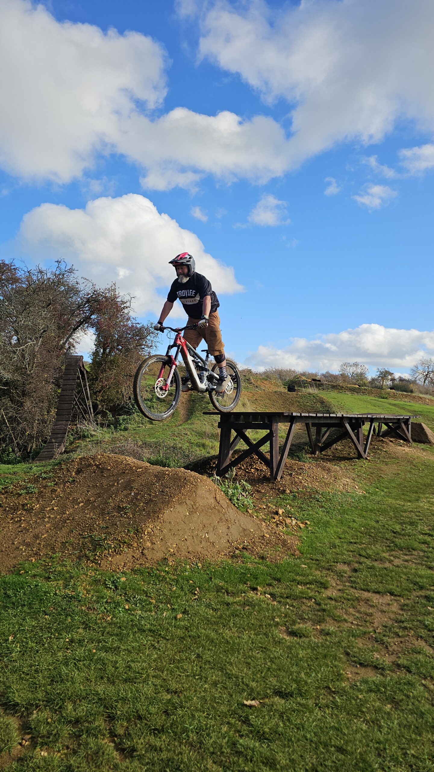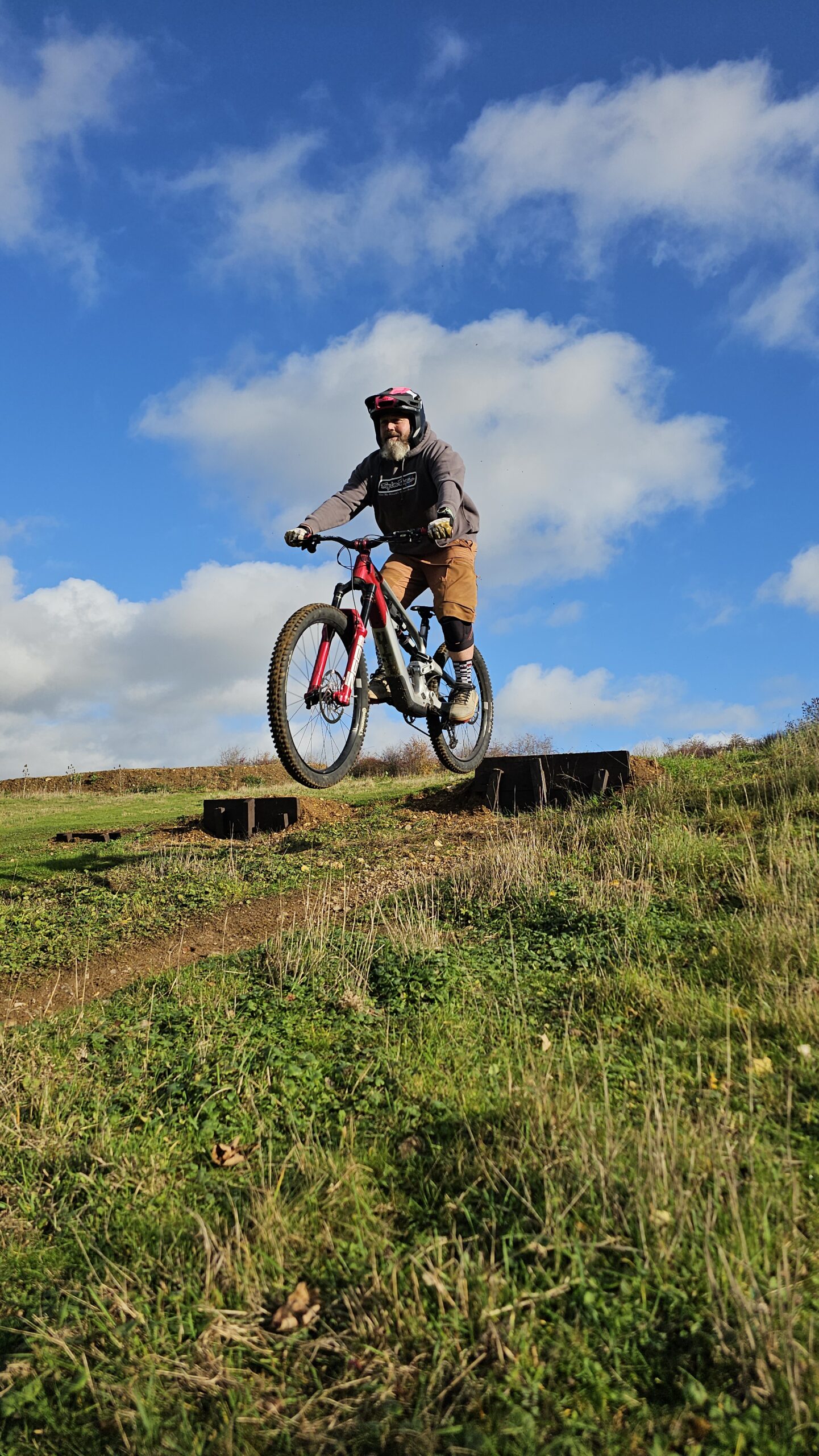 Dave and Andy wanted to learn to drop and jump better and move their riding on. The skills check showed body and foot positioning needed work before techniques could work properly. I began with drops, then moved to a 7ft tabletop jump to really separate the jump technique. From their they rode the gap jump side too before we moved to cornering. After lunch , I began moving them through to more gaps and drops and linking a long line onto the woodwork. Wallrides, wooden gaps and drops were all linked in an awesome session of progression!