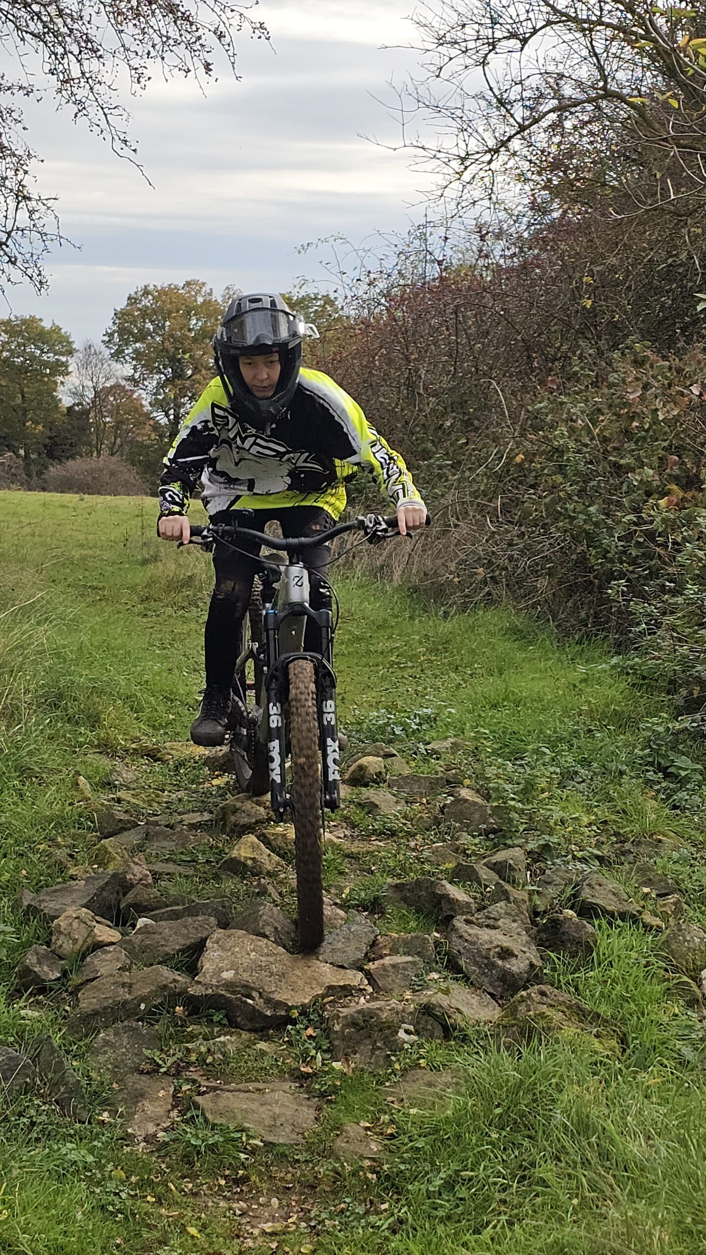 Jessie contacted me after reading recommendations on facebook. She wanted to learn to drop and jump and felt her fear of heights would hold her back. I could see the skills of foot and body positioning needed working on before the techniques could ever work. From there, Jessie went from strength to strength. Drops to 5ft, gap jump of 8ft and lots of tabletop jumps too. I worked on steep drop offs and cornering too with her. Amazing session!